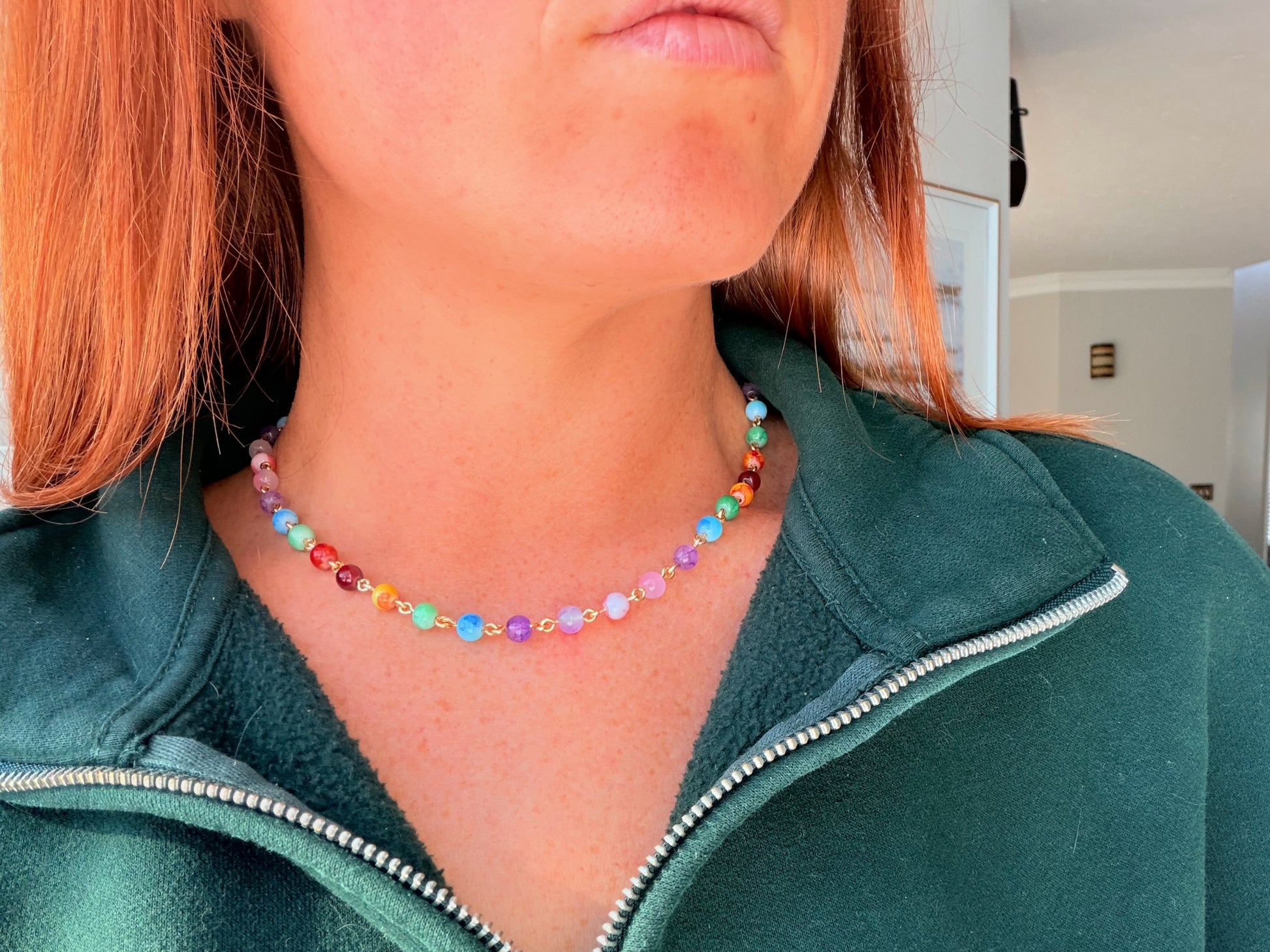 We updated the design to use 18-gauge wire with a looper tool so the beads stay secure and perfectly spaced, and we added a little extra length so it now measures approximately 17.5 inches with an additional 1.5 inch extender for layering freedom.