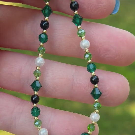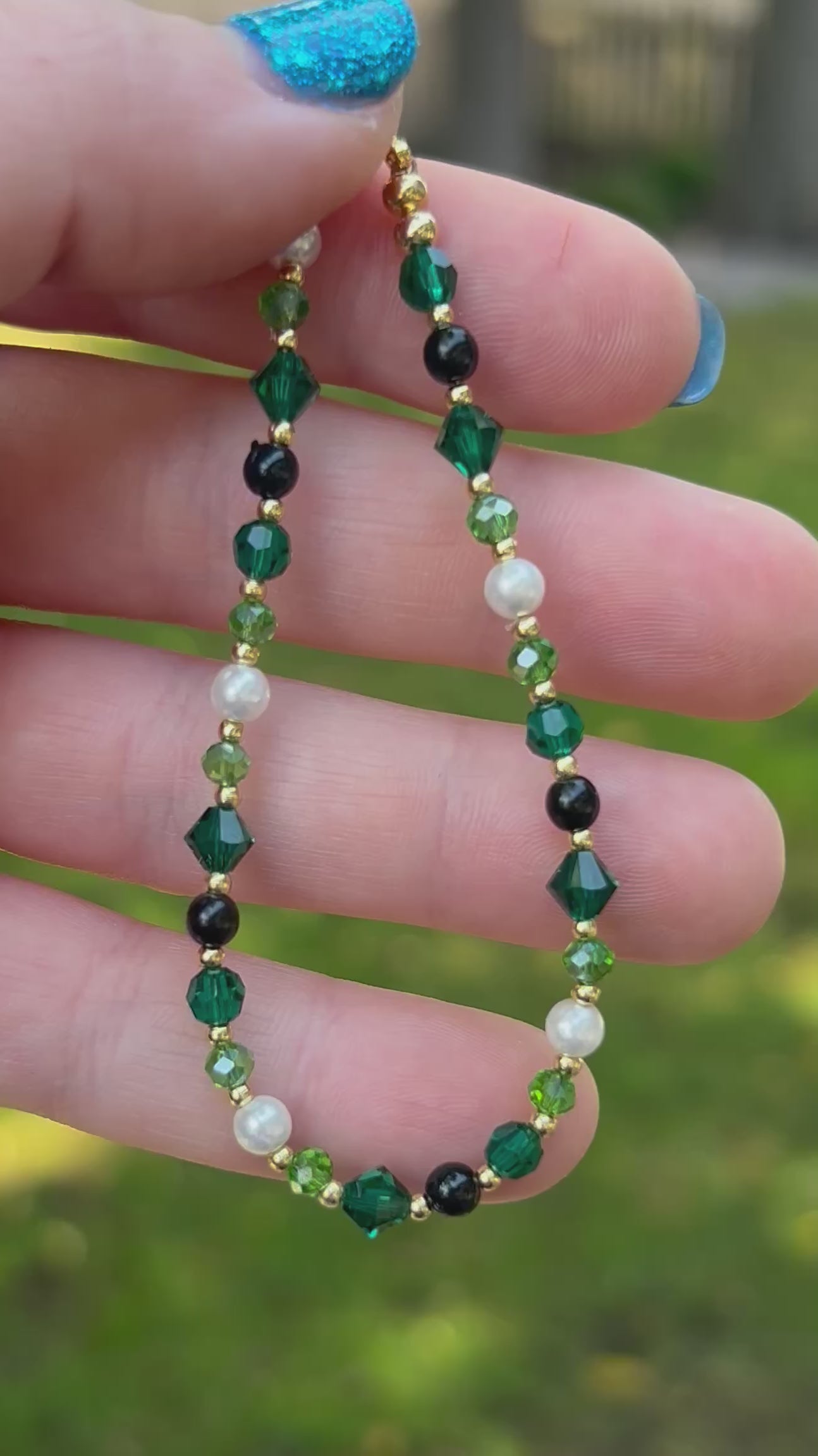 She’s giving 100% Elphaba vibes😏 Deep emerald stones paired with lighter greens, black accents, and pearls create a bold but wearable bracelet. 6.5” with a 0.5” extender gives the perfect fit and layers nicely with your other pieces. For the May babes… or anyone who wants a piece of sparkly green magic.