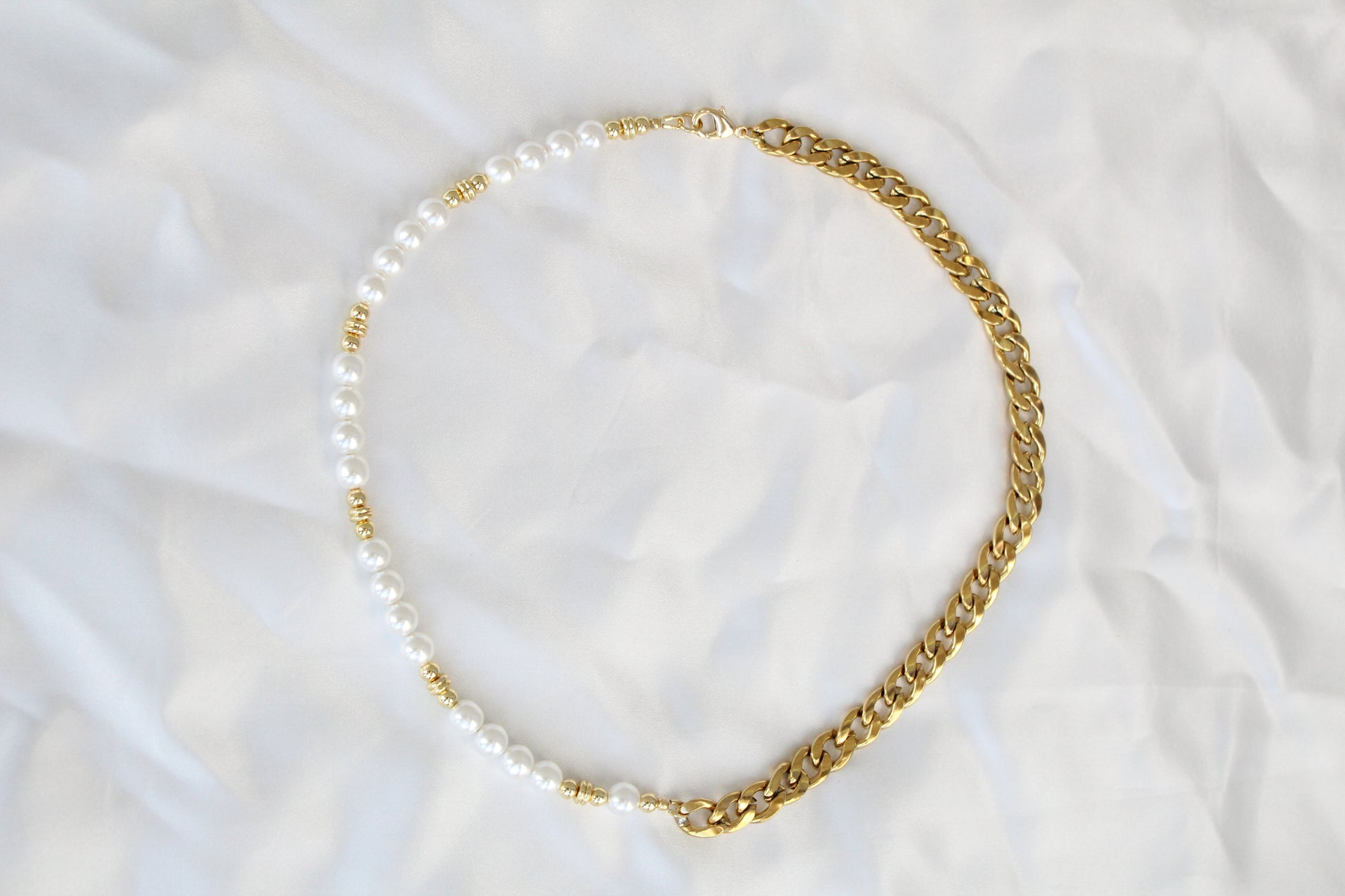 Bring the beach vibes wherever you go with the Men’s Malibu Vacation Chain. This 21” piece is the perfect balance of luxury and edge, featuring a mix of gleaming gold and pearl beads on one side and a bold Cuban chain on the other.