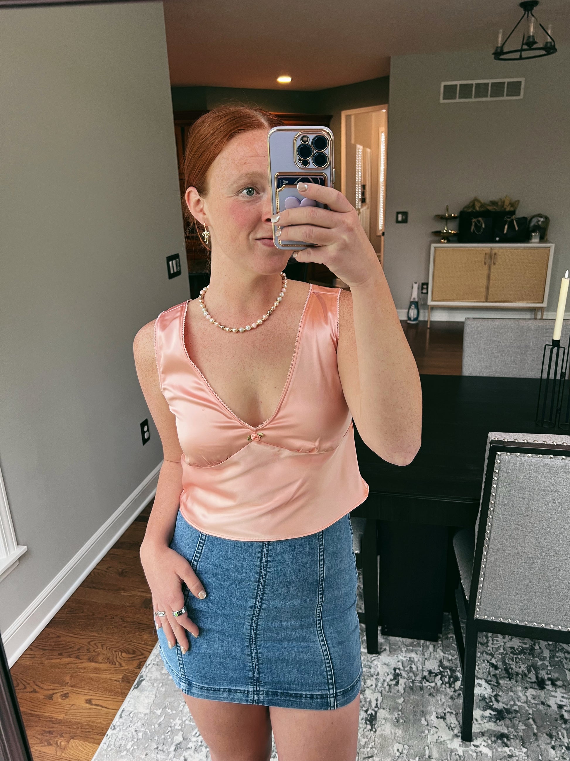 The Pink Champagne Pearl Necklace brings together 8mm pearls in dreamy pinky-neutral tones, accented with delicate gold spacer beads for a warm, understated shine. Designed at 18” to wear alone or layered, it’s the kind of piece that feels just as special at a Sunday brunch as it does at a spring wedding. Pink Champagne is made to bring a soft, easy glow to every moment — no occasion required.
